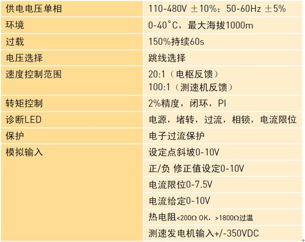 單獨的控制回路、大量的特點以及非常線性控制回路使得 512C成為單機或多傳動應(yīng)用的理想選擇。 512C可驅(qū)動永磁直流電機和他勵直電機, 提供速度和轉(zhuǎn)矩控制模式。可使用”開環(huán)” 電樞電壓反饋方式或直流測速發(fā)電機反饋 以提高調(diào)節(jié)精度和速度范圍。防護等級IP00.