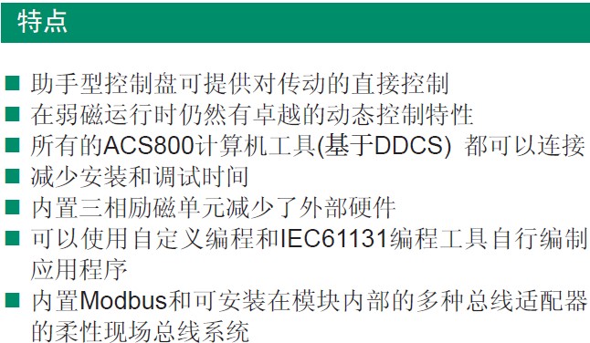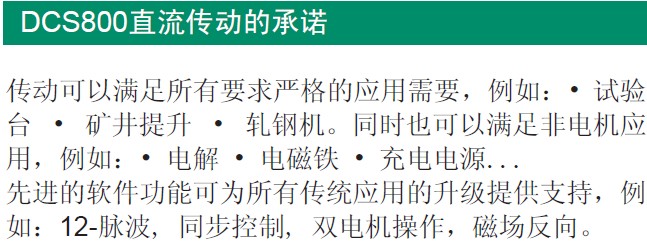 DCS800直流傳動是一種購買、安裝、配置和使用都很方便的傳動產品,可以節省用戶大量時間。傳動具有通用的用戶操作界面;可與現場總線接口連接;通用的選型、調試、維護軟件;通用的備件