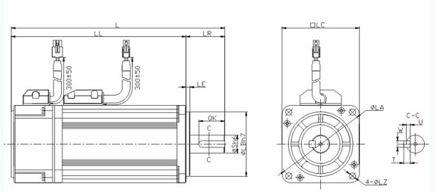 說明:特性: ※ 用于高速驅動各類機械進給軸 ※ 多種規格(200W~400W,可選配失電制動器) ※ 配備TAMAGAWA 2500P/R增量式光電編碼器 ※ 防護等級為IP65 應用領域 : ※ 紡織機械 ※ 包裝機械 ※ 機械手 額定值和規格: ※ 額定輸出功率(W):200 ※ 額定轉矩(N?m):0.64 ※ 瞬間最大轉矩(N?m):1.92 ※ 額定電流(Arms):1.5 ※ 瞬間最大電流(Arms):4.5 ※ 額定轉速(r/min):3000 ※ 最高轉速(r/min):4500 ※ 轉子轉動慣量(×10-4 kg.m2):0.19 ※ 編碼器:省線型 2500P/R ※ 絕緣等級:F ※ 環境溫度:0~+40℃(不結冰) ※ 環境濕度:20~80%RH (不結露) ※ 防護等級:IP65 (除輸出軸伸和電連接器) L (mm):140 LL(mm):110 LR(mm):30 LA(mm):70 LB(mm):50 S (mm):14 LC(mm):60 LE(mm):3 LZ(mm):5 QK(mm):20 W(mm):5 T(mm):5 U(mm):3 |